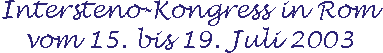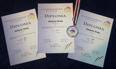 Intersteno-Kongresse finden alle 2 - 3 Jahre statt und werden von den Landesgruppen der Mitgliedsländer organisiert. Im Rahmen der Kongresse finden die Weltmeisterschaften in Kurzschrift, Tastschreiben, Textkorrektur, professioneller Textverarbeitung sowie Korrespondenz und Protokollierung statt. Ausgerichtet wurde der Kongress 2003 von der italienischen Landesgruppe, durchgeführt in Rom. Es war meine zweite Teilnahme an einem Intersteno-Kongress. Wiederum waren Mitglieder der Akademie für Aus- und Weiterbildung Stenografen-Vereinigung Oldenburg (Oldb) e. V. bei den Wettbewerben erfolgreich. Jochen Schönfeld erschrieb im Kurzschrift-Schnellübertragungswettbewerb eine Silbermedaille. In der Praxisorientierten Textverarbeitung erreichte er Bronze und ich Silber. Fotos der Siegerehrung sind hier zu sehen. Und hier geht es zu den Berichten aus Rundfunk und Presse. Weitere Informationen vom Intersteno-Kongress gibt es auf den Seiten der Intersteno-Landesgruppe Italien. Hier können auch noch Videos der Wettbewerbe, Kongressvorträge sowie der Siegerehrung angesehen werden. Auch die Intersteno-Landesgruppe Deutschland berichtet auf Ihren Seiten zum Kongress. Auf diesen Seiten können bereits die ersten Wettbewerbstexte heruntergeladen werden. Auf den Seiten des ZAV-Autors Jaroslav Zaviacic finden Sie unter anderem sein Referat zum Thema E-Learning sowie eine Aufstellung der Länder nach Medaillen und Punkten.