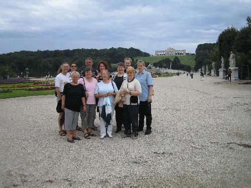 An den nächsten Tagen standen die Wettbewerbe im Vordergrund, an denen auch fünf Mitglieder der Akademie für Aus- und Weiterbildung Stenografen-Vereinigung Oldenburg (Oldb) e. V. teilnahmen (Hier klicken, um Bilder der Wettbewerbe anzusehen). Neben den Wettbewerben blieb uns auch noch viel Zeit, die Wiener Sehenswürdigkeiten zu besuchen, so auch Schloss Schönbrunn, in dessen Park das folgende Gruppenfoto entstand:
