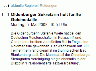 Weitere Berichte gab es zum Beispiel auf Radio Bremen am 5. Mai 2008: