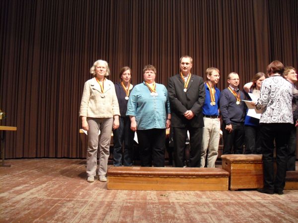 in englischer Kurzschrift: 1. Platz: VKMB Offenbach, 2 903 Punkte 2. Platz: Akademie AWeStO, 1 812 Punkte 3. Platz: Stenografenverein Langen, 1 535 Punkte |
