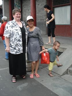 Vor der Aufführung war es möglich, die Schauspieler beim Schminken zu beobachten und zu fotografieren. Zunächst ist die Peking-Oper für deutsche Ohren schon etwas speziell, hat aber auch ihren Reiz. Man darf sie sich nur nicht wie eine deutsche Oper vorstellen – es wird weniger gesungen, sondern vieles pantomimisch und akrobatisch dargestellt. Die meisten fuhren nach der Vorstellung direkt mit dem Bus zurück ins Hotel, einige ließen sich aber an der nächsten U-Bahn-Station absetzen, um den Abend in einem netten Lokal am Ufer des Hou Hai beim Lotusmarkt ausklingen zu lassen. Donnerstag, 20. August 2009: Zaijian Beijing Am heutigen Tag, der uns mit strahlendem Sonnenschein und ca. 35 Grad beglückte, hatten wir nicht mehr so viel Programm. Um 11 Uhr besuchten Sylvia und ich die Intersteno-Generalversammlung, in der u. a. Paris als Austragungsort der nächsten Weltmeisterschaften (10. - 16.07.2011) vorgestellt wurde. Am Nachmittag begann um 16 Uhr die Siegerehrung. Es war relativ schwierig, nicht den Faden zu verlieren und mitzubekommen, um welchen Wettbewerb es gerade geht. Dies insbesondere aufgrund der sprachlichen Schwierigkeiten, denn Englisch sprechende Finnen oder Italiener hören sich zwar interessant an, aber man versteht doch leider nicht jedes Wort ;-) Auch die per PowerPoint angezeigten Namen passten nicht so unbedingt zu den aufgerufenen ... Deutschland hat sich bei der diesjährigen WM gut geschlagen, Medaillen und Pokale wurden reichlich abgesahnt, Details siehe hier. Nach der Siegerehrung gab es noch kurze akrobatische Aufführungen sowie ein chinesisches Büffet.