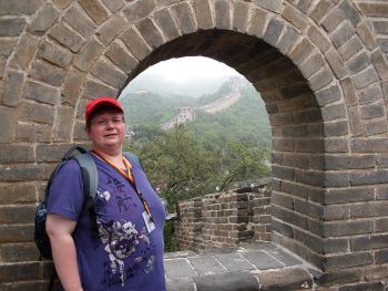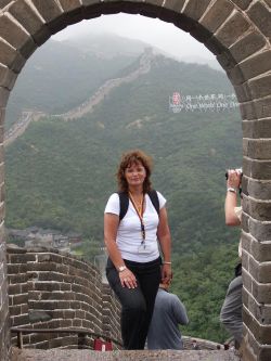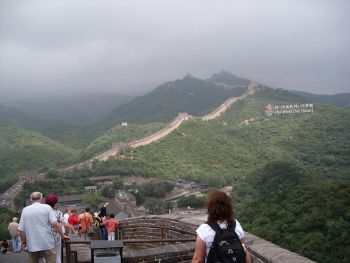 Zum Abschluss des Abends setzten wir uns dann von der Gruppe ab, um noch einmal in der Wangfujing Dajie zu spazieren. Da es schon nach 22 Uhr war und wir noch kein Abendessen hatten, lud uns das bekannte "M"-Zeichen zu einem leckeren Burger ein. Doch wie bestellt man, wenn alle Bilder nur mit chinesischen Schriftzeichen versehen sind? Egal - erstmal hinten anstellen! An der Theke angekommen, kam dann auch die Erleuchtung: Es lagen Tafeln mit englischer Bezeichnung aus! Zwar stellte sich der bestellte Chicken-Burger dann doch als doppelter Cheeseburger heraus, aber geschmeckt hat es trotzdem wie zu Hause :-) Nun nur noch die Taxifahrt zum Hotel organisieren. Wir haben ja gelernt: Nicht nur das kleine Hotelkärtchen mitnehmen, sondern auch gleich auf dem Stadtplan zeigen, wo es hingehen soll. Und tatsächlich: Alles hat reibungslos geklappt, wir sind in einer guten halben Stunde für 80 Yuan (ca. 8 EUR!) zurückgefahren worden. Morgen machen wir uns auf zur Chinesischen Mauer, auch das wird sicherlich sehr interessant. Besonders freuen wir uns aber auf die Peking-Oper am Abend ... was wir da wohl zu hören und zu sehen bekommen??? Mittwoch, 19. August 2009: Sonne in Beijing Um 9 Uhr startete am Mittwoch unser Ausflug zur Chinesischen Mauer. Nach ca. 1,5-stündiger Busfahrt kamen wir in Badaling, einem der meistbesuchten Abschnitte der Mauer, an. Der Aufstieg war dann ein Abenteuer für sich – festes Schuhwerk war sehr wichtig, denn an den meisten Stellen gibt es keine Stufen, sondern es geht einfach steil bergauf (und natürlich später auch wieder runter … mal sehen, wie der Muskelkater in den Waden morgen ausfällt …). Doch dafür entschädigte uns die atemberaubende Sicht über die Berge und sogar die Sonne war endlich einmal zu sehen.