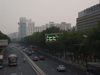 Auf der Fahrt zur Wangfujing Dajie hat sich übrigens der Ausspruch unseres Reiseführers "Verkehrsregeln sind in Beijing nur theoretisch" bewahrheitet. Wir hatten uns vom Hotel ein Taxi bestellen und dem Fahrer unser Ziel erklären lassen. Die Taxifahrt in die Innenstadt war sehr abenteuerlich, wichtigste Ausstattung an allen Fahrzeugen ist hier - neben dem Gaspedal - ganz eindeutig die Hupe! Busse, Autos, Motorroller, Fahrräder - alles fährt hier kreuz und quer, eingezeichnete Fahrspuren braucht man doch nicht wirklich. Fußgänger müssen beim Überqueren der Straßen gewaltig aufpassen, dass sie nicht unter die Räder kommen, denn auch eine grüne Fußgängerampel garantiert noch keinen sicheren Weg. Noch interessanter war es natürlich, aus der Innenstadt zum Hotel zurück zu kommen, wenn man kein Chinesisch spricht und der Taxifahrer kein Englisch versteht. Zwar gibt es hier im Hotel ein Kärtchen, auf dem die Anschrift in chinesischen Schriftzeichen vermerkt ist, aber was hilft das, wenn die Taxifahrer kein Navigationsgerät haben und sich nicht auskennen? Doch mit ein wenig telefonieren hat sich unser Fahrer dann schließlich noch zum Hotel durchgeschlagen ;-) Montag, 17. August 2009: Peking lässt grüßen Heute war es richtig kühl, nur 26 Grad, aber eine tropische Luftfeuchtigkeit, die uns ein ganz klein wenig kleben ließ. Der Tag startete wieder mit einem sehr gesunden Frühstück.